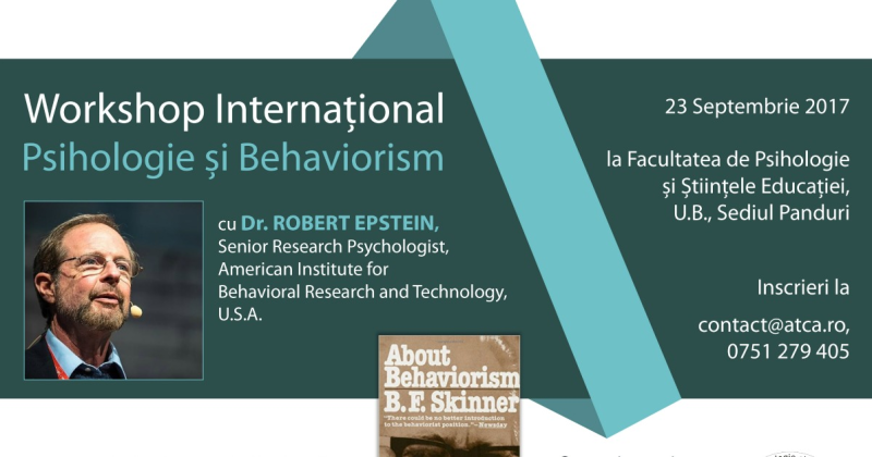 ATCA – Asociatia de Terapie Comportamentala Aplicata, in parteneriat cu Facultatea de Psihologie si Stiintele Educatiei, U.B., Departamentul de Psihopedagogie Speciala, organizeaza primul Workshop International de Psihologie si Behaviorism cu Dr. Robert Epstein, cu ocazia lansarii in limba romana a lucrarii renumitului behaviorist B.F. Skinner, "About Behaviorism". Evenimentul este acreditat de catre COPSI. Evenimentul are loc in data de 23 septembrie 2017, la putin peste 100 de ani de la formularea primelor principii ale behaviorismului.