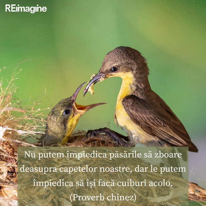 "Nu putem împiedica păsările să zboare deasupra capetelor noastre, dar le putem împiedica să își facă cuiburi acolo". (Proverb chinez)