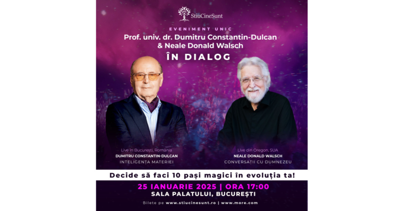Link pentru detalii și bilete: https://stiucinesunt.ro/dumitru-constantin-dulcan-si-neale-donald-walsch-in-dialog/