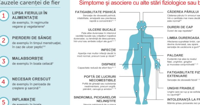 Despre cauzele, simptomele si starile fiziologice asociate deficitului de fier, te invitam sa afli din infograficul urmator: