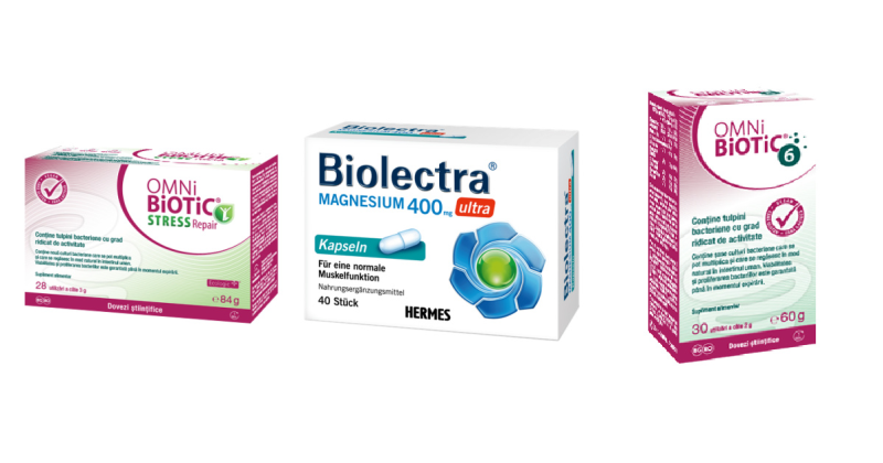 OMNI-BIOTIC® Stress Repair – conține tulpini bacteriene special selectate pentru a depăși perioadele stresante mai ușor. Ajută la refacerea barierei intestinale afectate și la sinteza serotoninei și melatoninei, îmbunătățind astfel starea de spirit, calitatea vieții și a somnului. Este potrivit pentru persoanele supraponderale și obeze care suferă de stres cronic, pacienți care suferă de inflamații cronice (ex. artrită, fibromialgie, tiroidită Hashimoto, boli autoimune) sau pentru cei care suferă de inflamații cronice ale pielii (ex. rosacee, acnee, borreliosis, psoriazis).