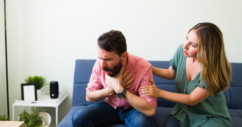 Reacțiile alergice severe pot provoca umflarea în partea din spate a gurii, care poate bloca fluxul de aer și poate provoca o senzație de sufocare.