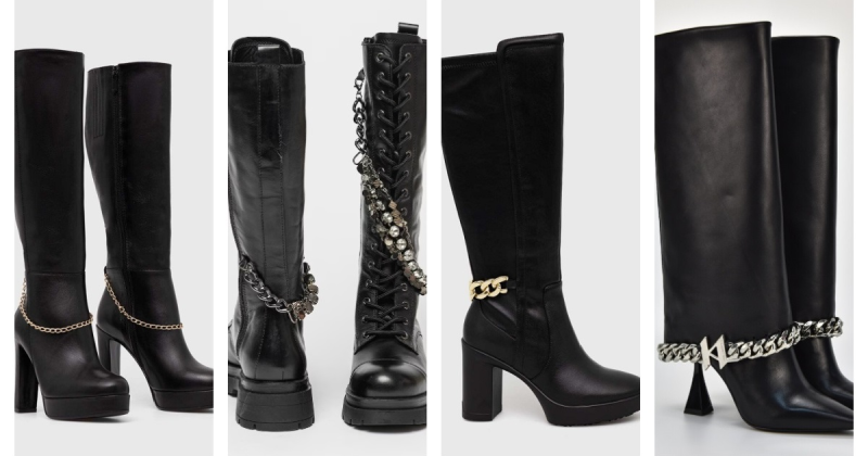 Lanțurile metalice - un detaliu surprinzător în încălțăminte în iarna 2024! 10 modele de cizme trendy cu lanțuri decorative