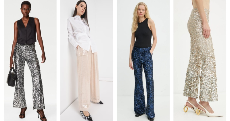 Designerii au transformat pantalonii cu paiete în must-have-ul sezonului de iarnă 2025, explorând nuanțe îndrăznețe de auriu și argintiu, dar și tonuri mai discrete de negru, bronz sau bleumarin. Modelele cu talie înaltă alungesc silueta, cele evazate evocă eleganța anilor ’70, iar variantele cropped sunt ideale pentru un aer modern, ușor jucăuș. Indiferent de preferințe, există o pereche pentru fiecare stil și personalitate.