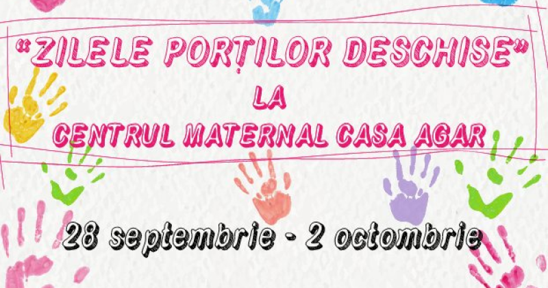 Toti cei care vor sa treaca pragul Centrului Maternal sunt asteptati, in perioada 28 septembrie – 2 octombrie, intre orele 10:00-12:30 si 17:00-20:30, respectiv joi 16:00-20:30, la Centrul Maternal Casa Agar din Strada Badea Cartan, numarul 8, Sector 2. Bucuresti.
