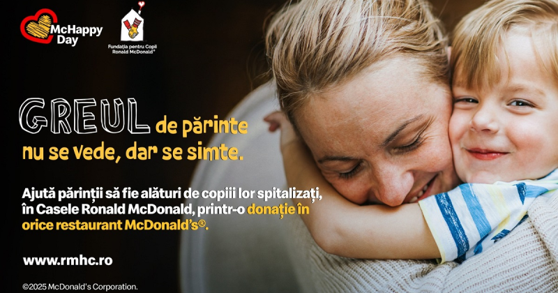 Pentru că, uneori, cel mai prețios lucru pe care îl poți oferi unui părinte este posibilitatea de a fi aproape de copilul său. Mai multe detalii despre campania McHappy Day pot fi găsite aici: https://rmhc.ro/mchappy-day-2025-editia-2/.