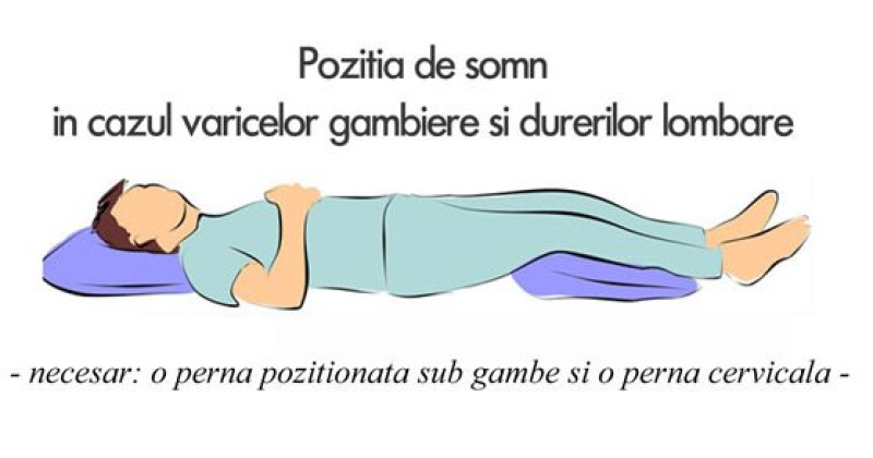 Dar sa nu intram atat de mult in amanunte privind complicatiile varicelor gambiere. Pentru a ajuta venele sa dreneze este recomandat ca pe timpul noptii nivelul talpilor sa fie putin mai sus decat cel al bazinului. Pentru a obtine aceasta pozitie fie dorimiti cu picioarele ridicate pe o perna, fie puneti o patura sul sub saltea sau perne sub saltea, in capatul unde dormiti cu picioarele. Aceasta din urma este cea mai comoda varianta.