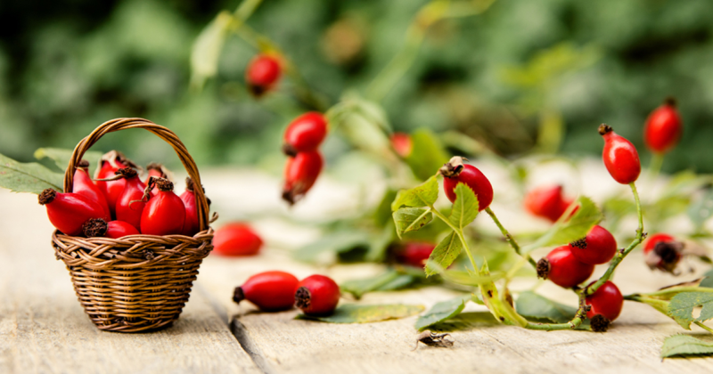 Fructele de măceș, împreună cu sâmburii, sunt bogate în vitamine, mai ales vitaminele A, C și vitamine din complexul B, având un efect intens antioxidant.