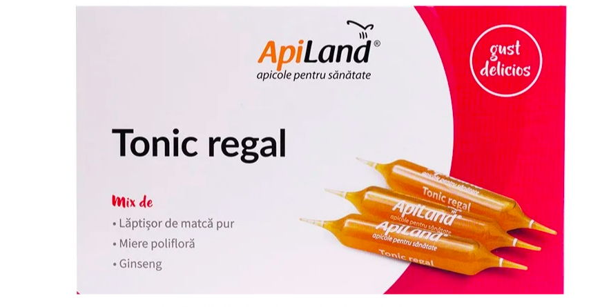 Tonicul regal este un produs apicol inedit ce combină lăptișor de matcă pur, miere crudă și ginseng. Conținutul de ginseng și lăptișor de matcă pur amestecat în miere crudă fac din tonicul regal un cocktail de substanțe benefice, un energizant natural cu efecte imediate în organism.