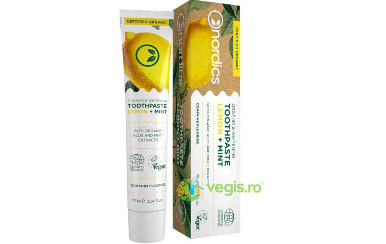 Pastă de Dinți pentru Albire cu Lămâie și Mentă Bio 75ml NORDICS