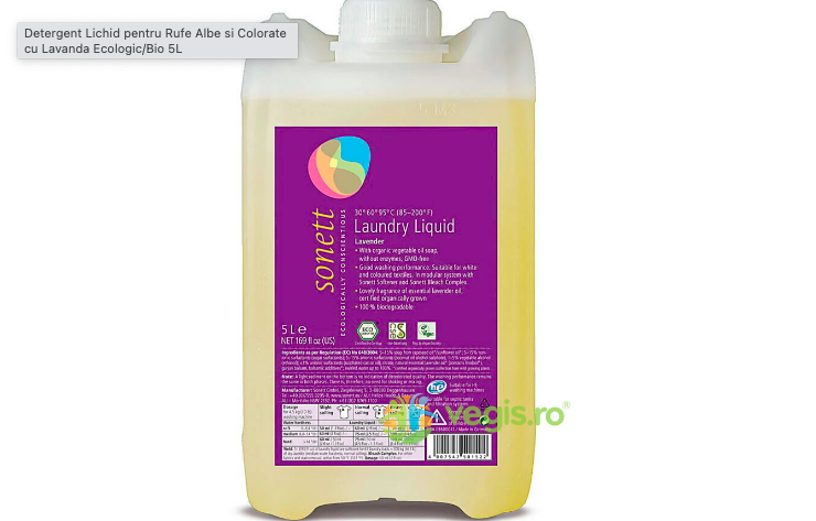 Detergent Lichid pentru Rufe Albe și Colorate cu Lavandă Ecologic/Bio 5L SONETT