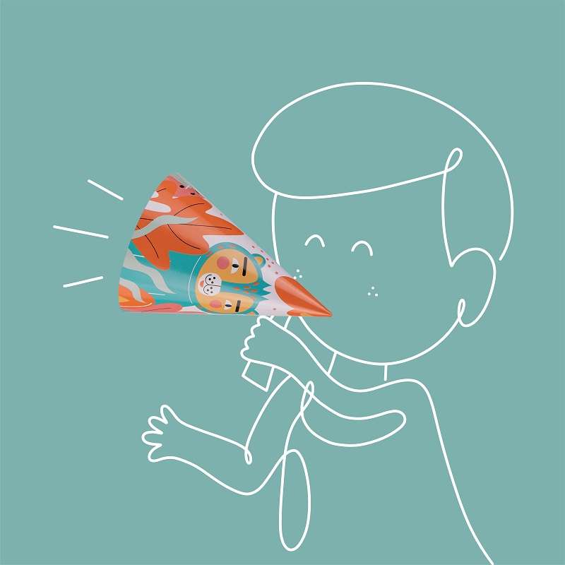 Gândită ca o invitație la joacă și explorare, colecția Jungle include produse precum pahare, boluri, farfurii din carton, paie, față de masă, coifuri și triunghiuri pentru petreceri. Este prima colecție de ambalaje bio-based și compostabile din România, adresată copiilor.