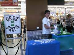 Multi oameni aflati pe 23 mai la cumparaturi, au avut surpriza de a li se oferi ‘orez gratis’. Proiectul de art performing este semnat de catre artistul Kristofer Ardenia, filipinez, locuitor al Madridului, care a regandit harta lumii, prin intermediul unui produs specific tarii sale natale, ‘orezul’. “Arta este ceva la care participi fara sa stii. Oamenii nu mai au timp sa vada si sa inteleaga tot ce se intampla in jurul lor. Orezul este simbolul Filipinelor, dar si a intregii Asii. Eu am dus acest simbol in Spania si acum la Bucuresti, in acest spatiu al supermarketului, pe care il consider cel mai potrivit. Astfel, aceasta harta imaginara se disipa…”, isi explica Kristofer Ardenia, conceptul.