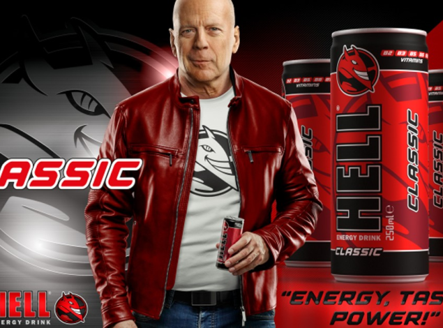 Bruce Willis, imaginea brandului HELL ENERGY...