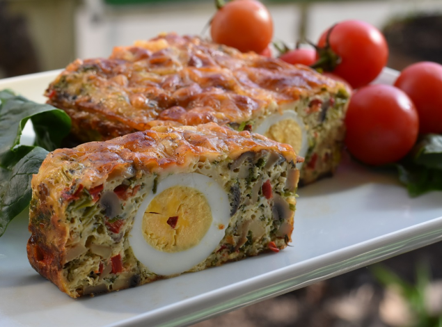 Mic dejun de duminica: Omleta cu ciuperci si porumb la cuptor