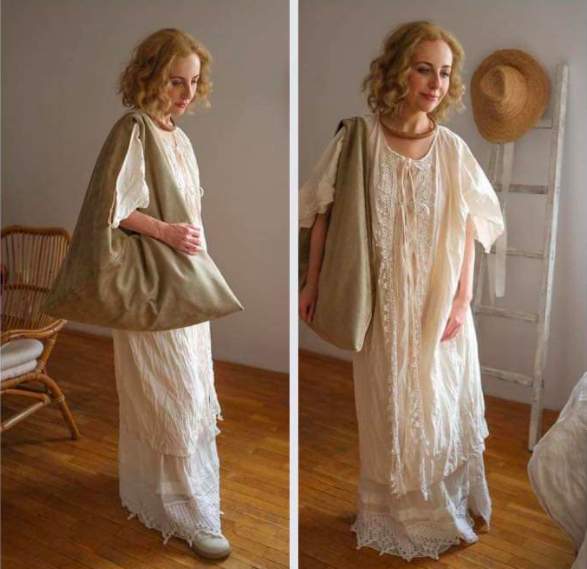 Mi-am dorit mult să lucrez pe acest tip de material natural. Astfel, primele mele genți au avut o compoziție: in, in-bumbac, in-cânepă.
