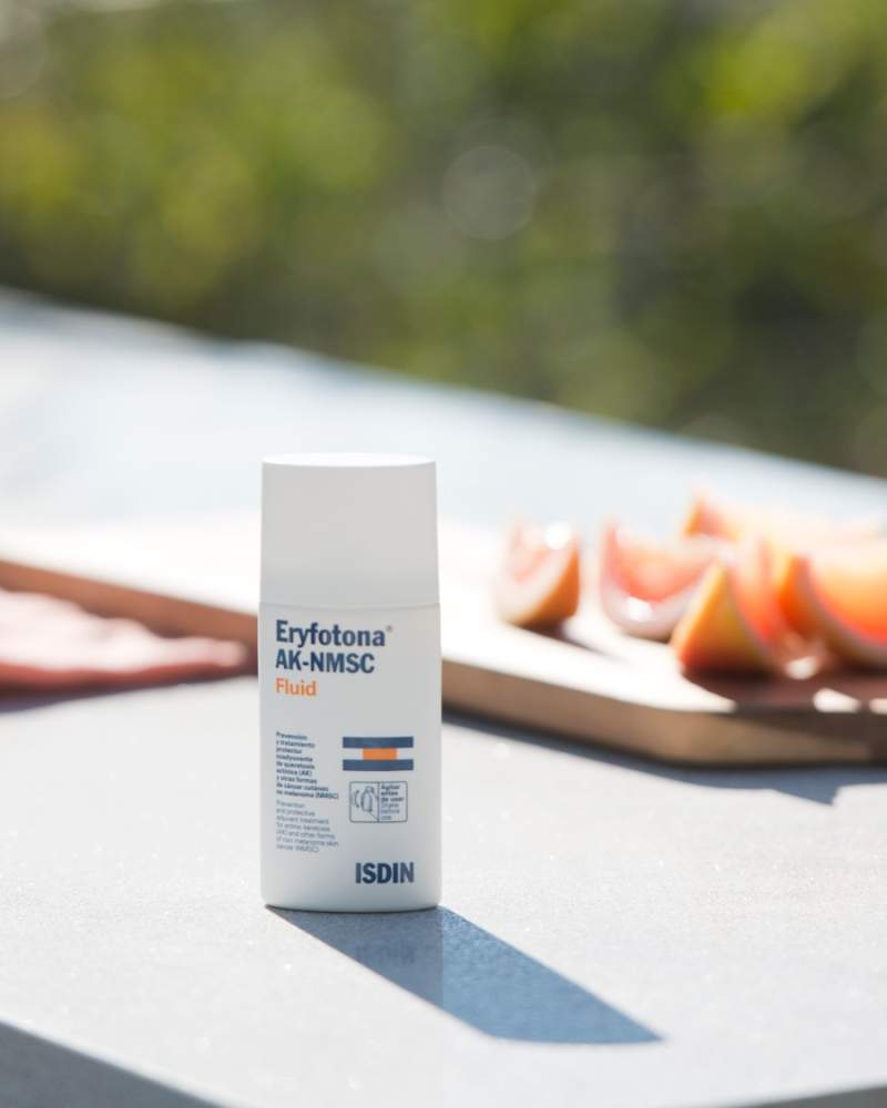 ISDIN Eryfotona AK-NMSC asigură prevenție și tratament adjuvant protector în leziuni actinice (cu risc mai mare de a dezvolta cancer de piele) și cancer de piele non-melanom. Inovatorul produs include tehnologia patentată DNA Repairsomes®: SPF 100+ UVB, UVA, LUMINĂ VIZIBILĂ, IR-A și fotoliază încapsulată în lipozomi (molecule care transportă enzimele de fotoreactivare care au rolul de a repara mutațiile ADN-ului produse de ultraviolete). Utilizarea fluidului Eryfotona AK-NMSC reduce și ameliorează câmpul de cancerizare subclinic asociat cu keratoza actinică și alte forme de cancer de piele non-melanom, cu numeroase rezultate dovedite clinic de la lansarea lui pe piața din Spania în 2008