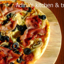 O reteta de pizza facuta in casa cu de toate: ciuperci, cascaval, porumb,masline.