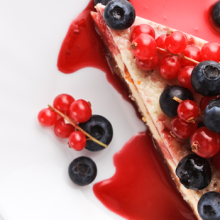O prajitura delicioasa cu ciocolara, cafea si fructe de padure.