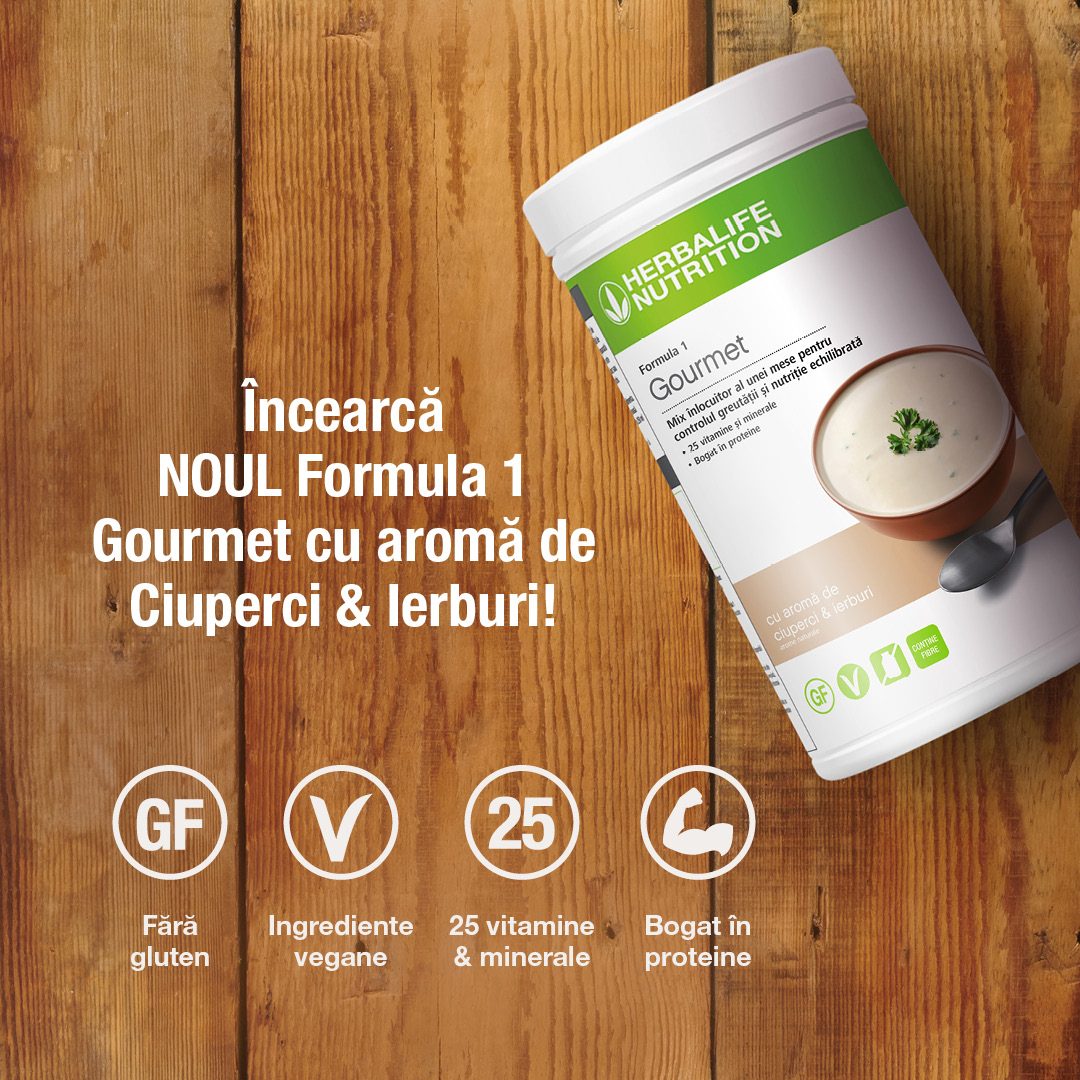 ,,Suntem bucuroși să completăm gama noastră deja cunoscută de înlocuitori de masă, cu F1 Gourmet cu aromă de ciuperci și ierburi”, declară Romeo Căzănescu, Country Director Herbalife Nutrition România, Moldova, Ungaria şi Bulgaria. ,,Majoritatea clienților consumă în prezent shake-ul F1 ca înlocuitor al meselor de dimineață sau seară, iar acum, avem plăcerea să le oferim și o opțiune caldă și savuroasă de înlocuitor de masă pentru prânz sau cină”.